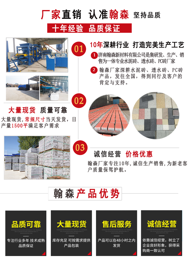 翰森新材料廠家現貨供應:荷蘭磚,透水磚,PC磚,面包磚,陶瓷透水磚,燒結磚,景觀磚,鋪路磚,植草磚,盲道磚等系列產品,產品規格齊全,顏色多樣;